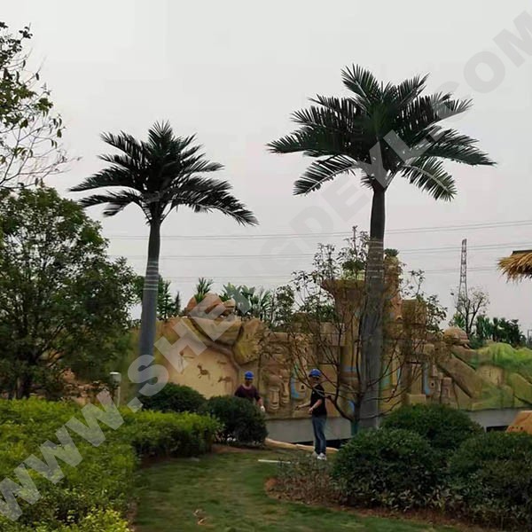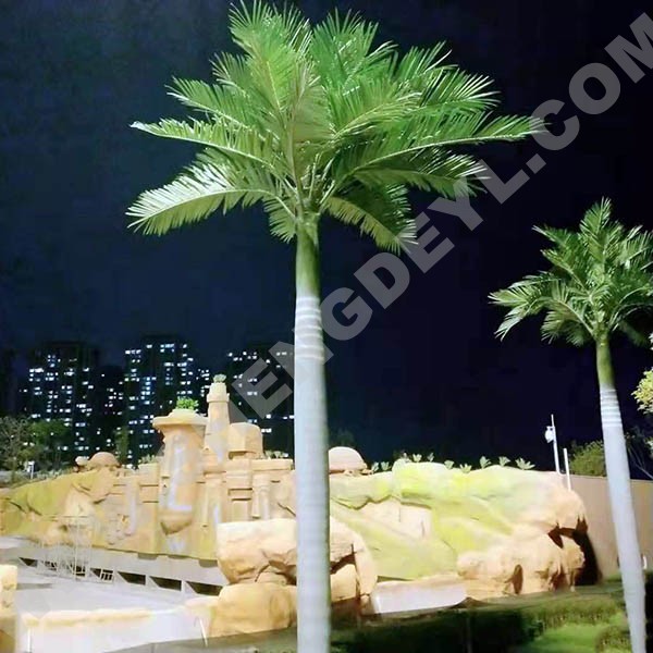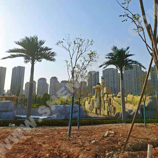 仿真椰子樹通常采用璃鋼樹脂樹桿結(jié)構(gòu),采用高性能環(huán)氧樹脂和玻璃纖維纏繞成型,樹桿內(nèi)采用國標(biāo)鋼結(jié)構(gòu),樹葉采用ABS塑料或PU等高性能防阻燃環(huán)保材料。耐腐蝕性能良好,耐老化耐高溫防阻燃,更加環(huán)保,防紫外線。
