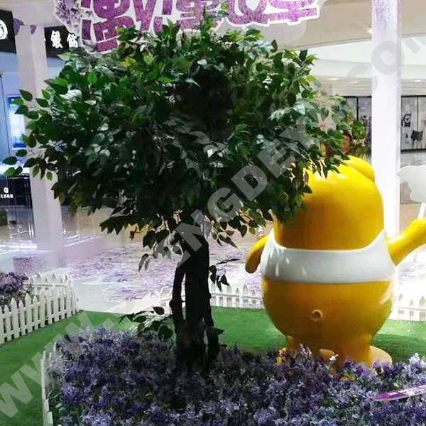 仿真榕樹采用的是玻璃鋼環(huán)保材料,無毒無害,自然逼真,表面紋理清晰,綠意盎然,不用養(yǎng)護(hù),無需打理,不受環(huán)境影響,四季都能給你帶來一片綠色景象。既適合用室外也適合用于室內(nèi),室內(nèi)室外的制作在大小還有材質(zhì)上有一些區(qū)別,但用途都是一樣的,各有特色,它用來造景最突出的特點(diǎn)就是給人一種非常震撼的視覺感。