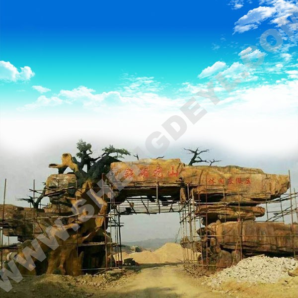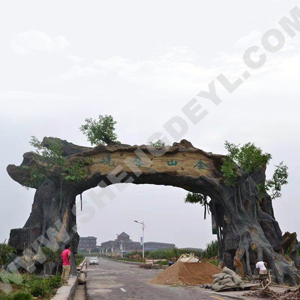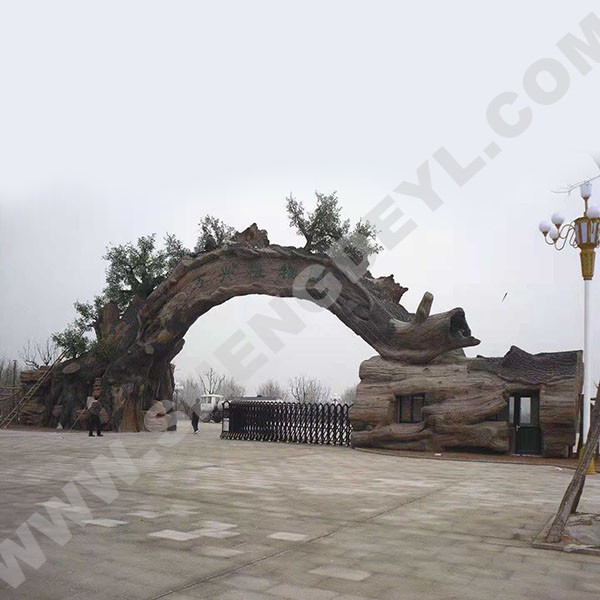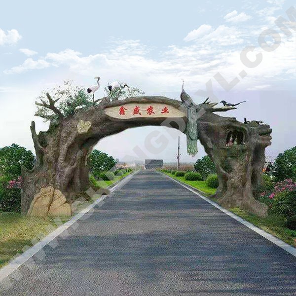 水泥仿真樹大門是仿真樹制作的較高境界,主要使用于公園景區(qū)、生態(tài)園入口、主題餐廳大門,農(nóng)家樂(lè)等主題景觀的營(yíng)造。水泥仿真樹大門同時(shí)借鑒了根雕工藝和雕塑工藝,仿真植物采用雕塑手法制作,仿真自然界中常見的植物造型,鑲嵌于大門景觀中,突出整體環(huán)境的格調(diào)。